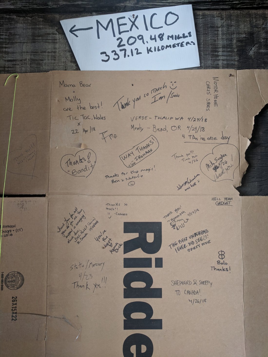 The cardboard is for everyone to write something. This is the one I signed.