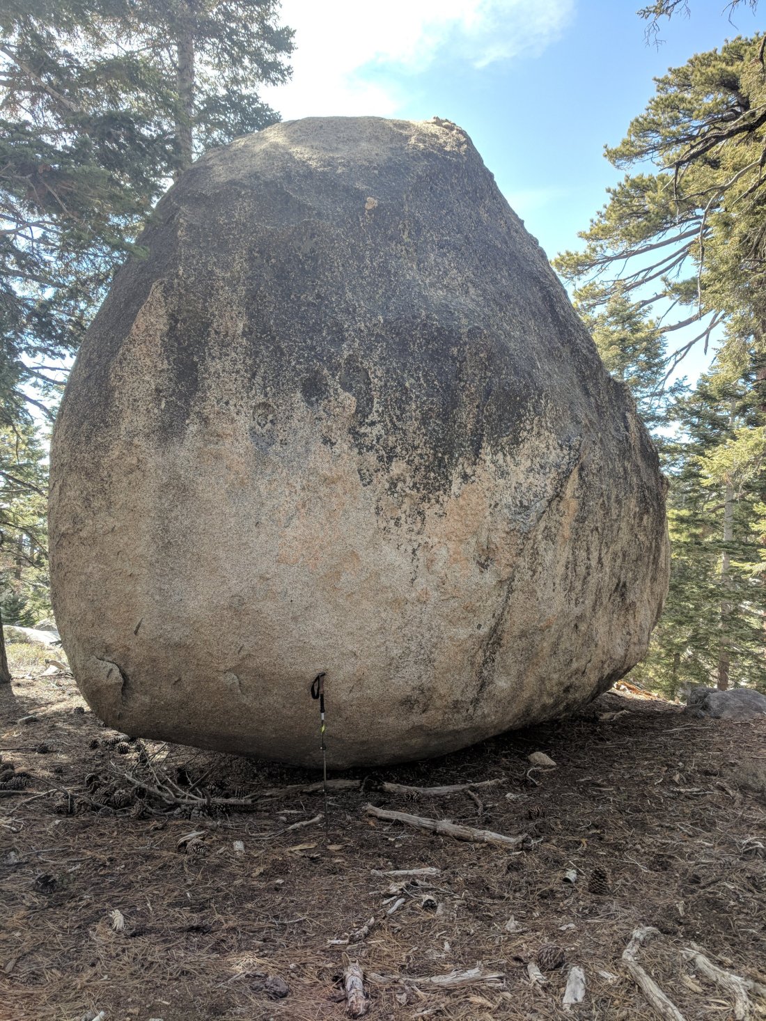 Like this boulder back by San Jacinto, see my trekking pole for scale. Its like this was just recently placed here! Some others like this have yet another boulder on top like someone was stacking stones.