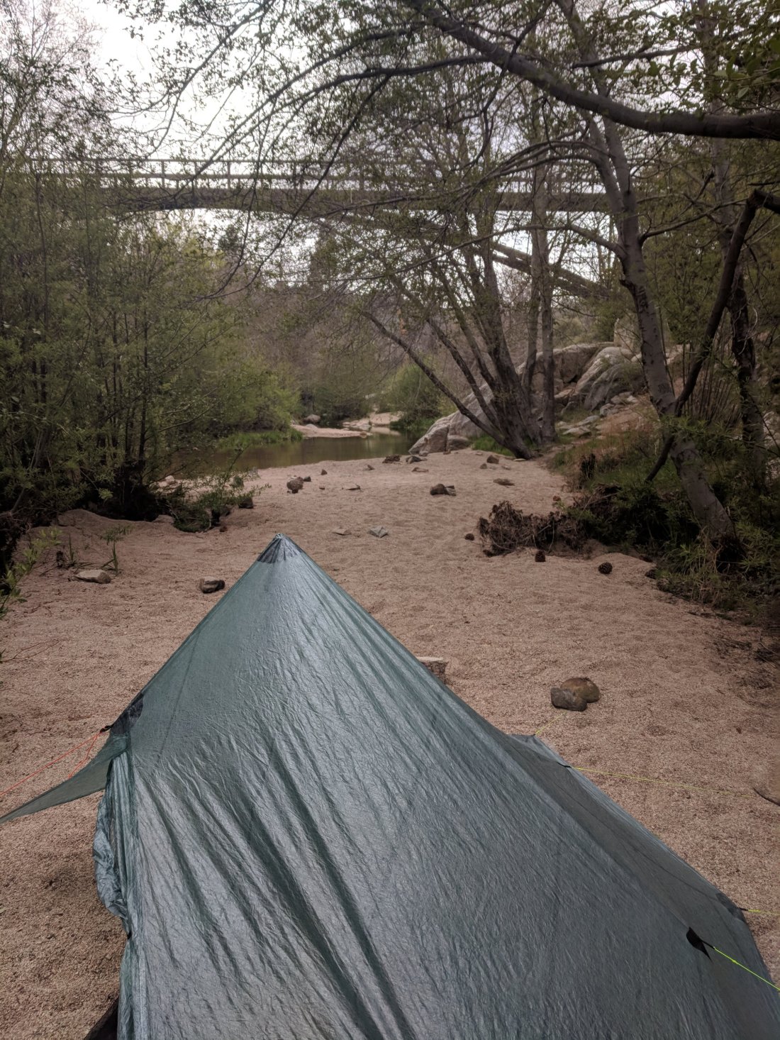 My Guthooks app shows no campsites for 30 miles? This seems really odd but there’s got to be some. At 5:50 I arrived at Deep Creek Bridge where several other classmates were already setup. I found a nice spot on the opposite side of the creek.
