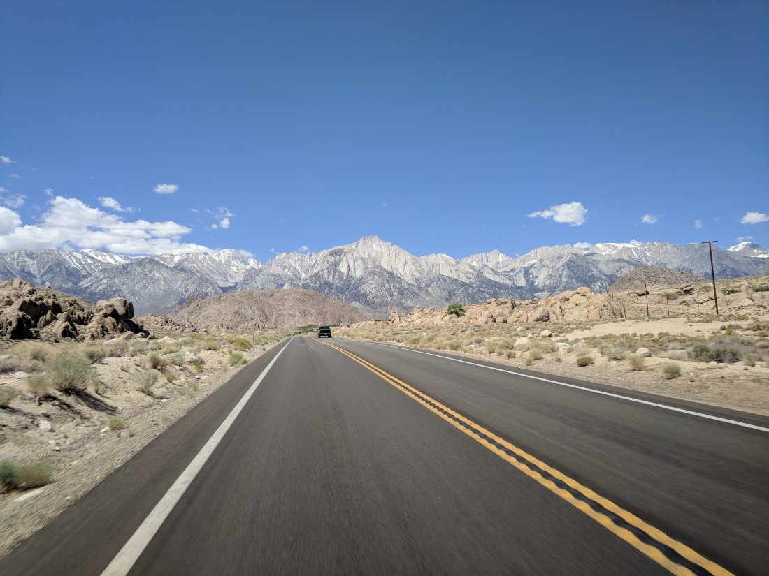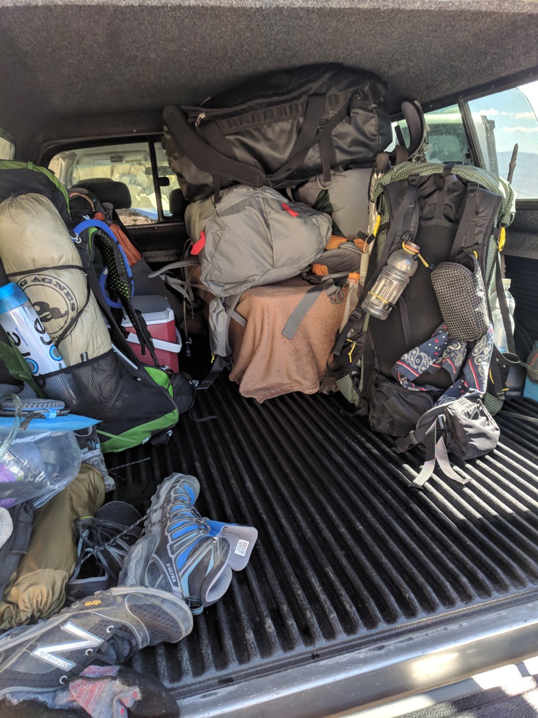 Horseshoe Meadow is a day use area with an equestrian set up too. This is the exit point into Lone Pine and takes a lengthy hitchhike down to town. I arrived at the parking area at the same time as another hiker named Alex from France. We waited only 15 minutes and a Toyota Tacoma pickup pulled up with 3 guys heading to Lone Pine after an attempted fishing hike cut short due to snow, what luck. They also had another PCT hiker with them named Siesta. Alex and I crammed ourselves and packs into the canopy.