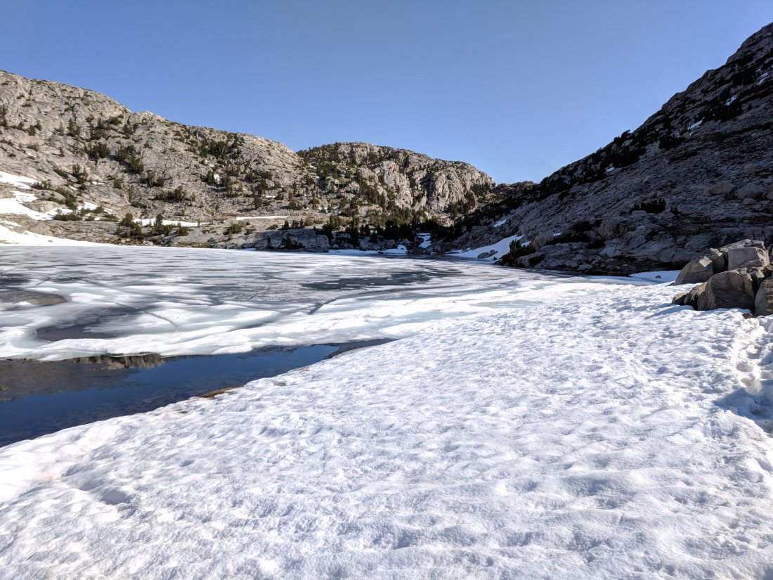 If my calculations are correct, I left Lone Pine at 11:00am on 5/30, arrived to VVR at 6:40pm=199hr40min=8days 7hr40min to go 119 miles plus a side trip up Mt Whitney. I had planned 9 days of food.