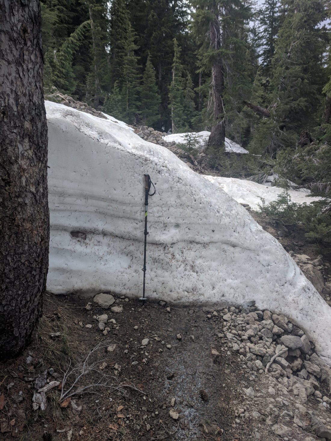 Still some deep snow on shady trail areas.