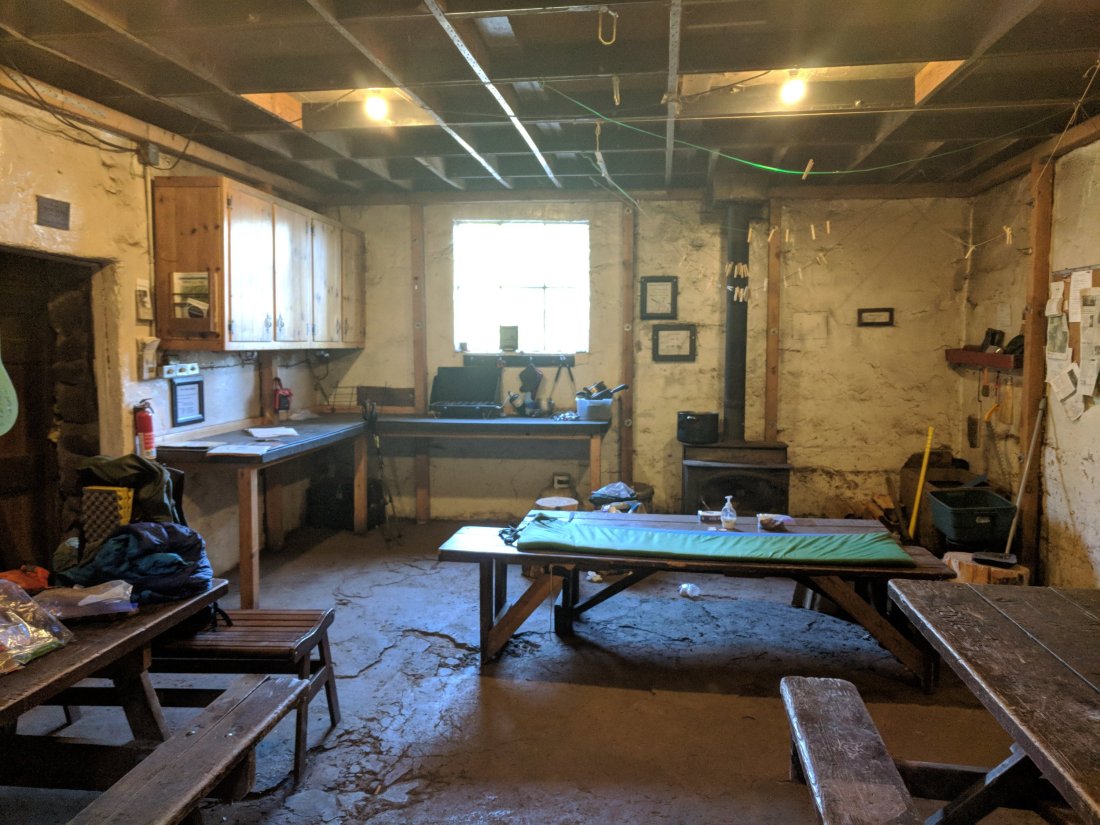 This is my accommodation for the night, the Peter Grubb Hut here. I slept on the green mat in the picture below. The hut has been outfitted with solar lights. When I arrived there was a couple eating in here. The girl thought the cabin was a bit to creepy to sleep in tonight so they decided to set up their tent.