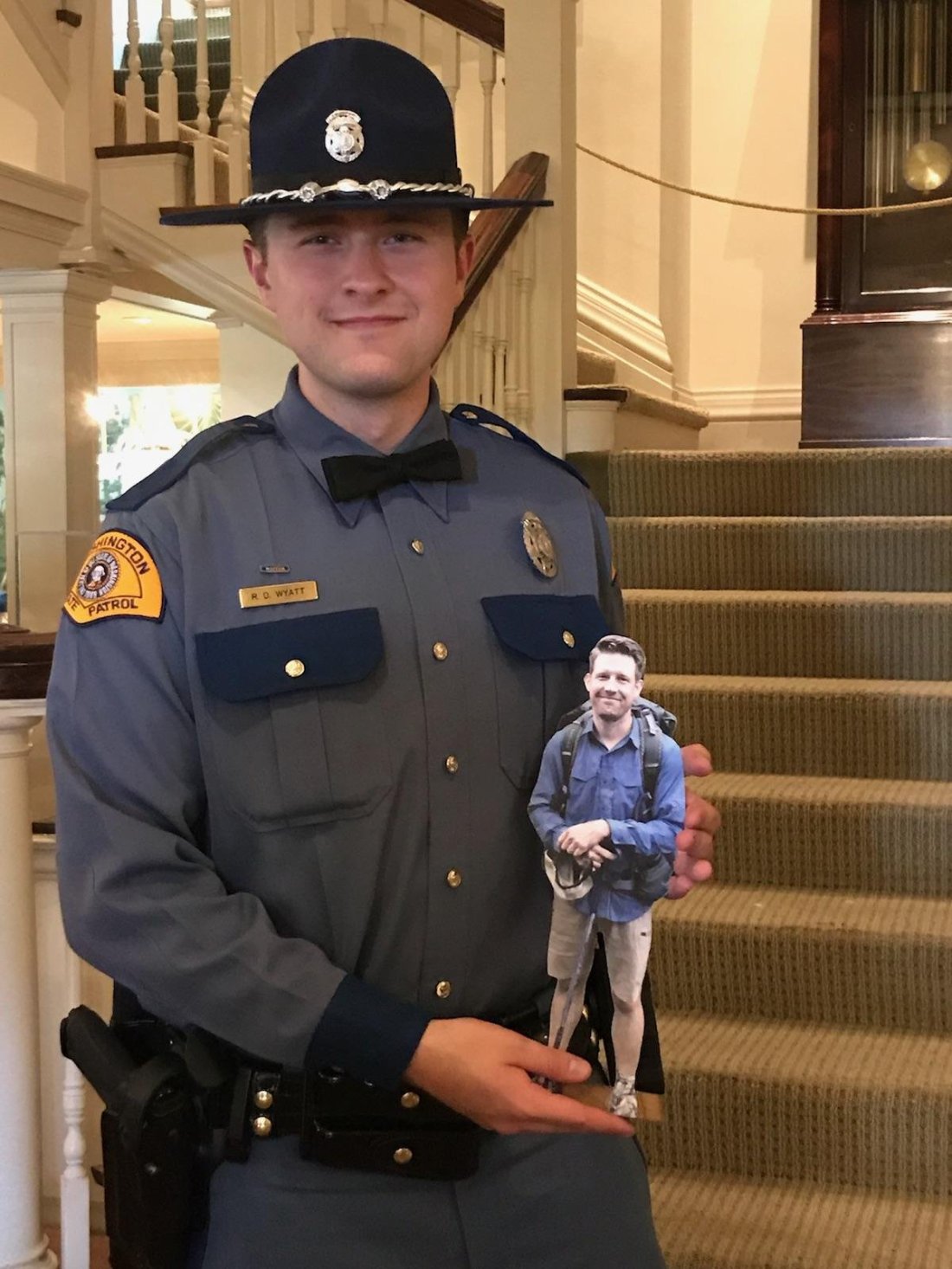 Rileys State Patrol graduation. Cameron, Katie and Riley Wyatt and my son Morgan (BTW Morgan made the Dean’s list again, good job !!)