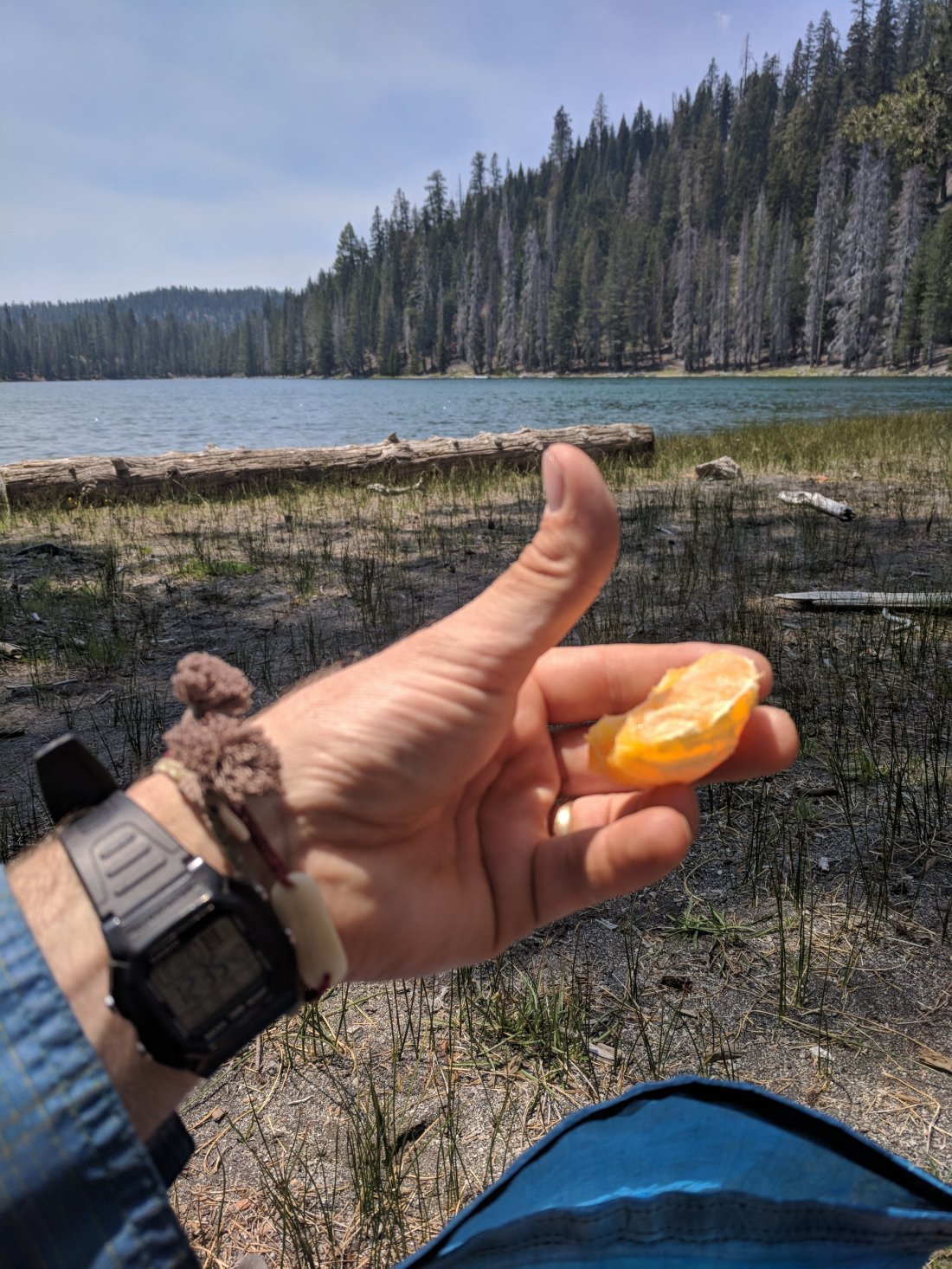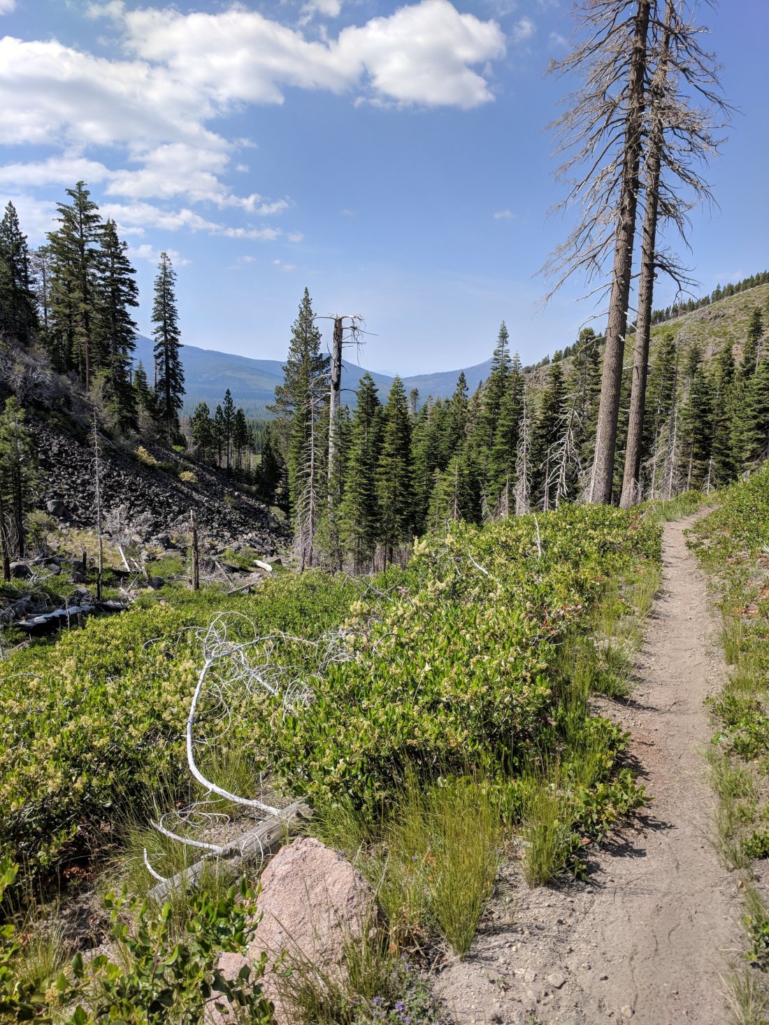 Today was mostly downhill and 1day away(light pack) from resupply in the town of Old Station. I passed through Warner Valley Campground and changed into shorts. A couple, Linda and Anthony camping nearby came over and asked about my hike. They ended up giving me an apple and blueberries! Thank you!