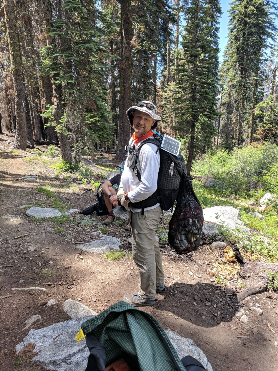 This is Goaltech, he and two of his buddies were section hiking south bound. One of his friends was Tom Spencer from Yakima! Goaltech carries the sack full of potato chips and other items to give to thru-hikers as Trail Magic! Thank you Goaltech!