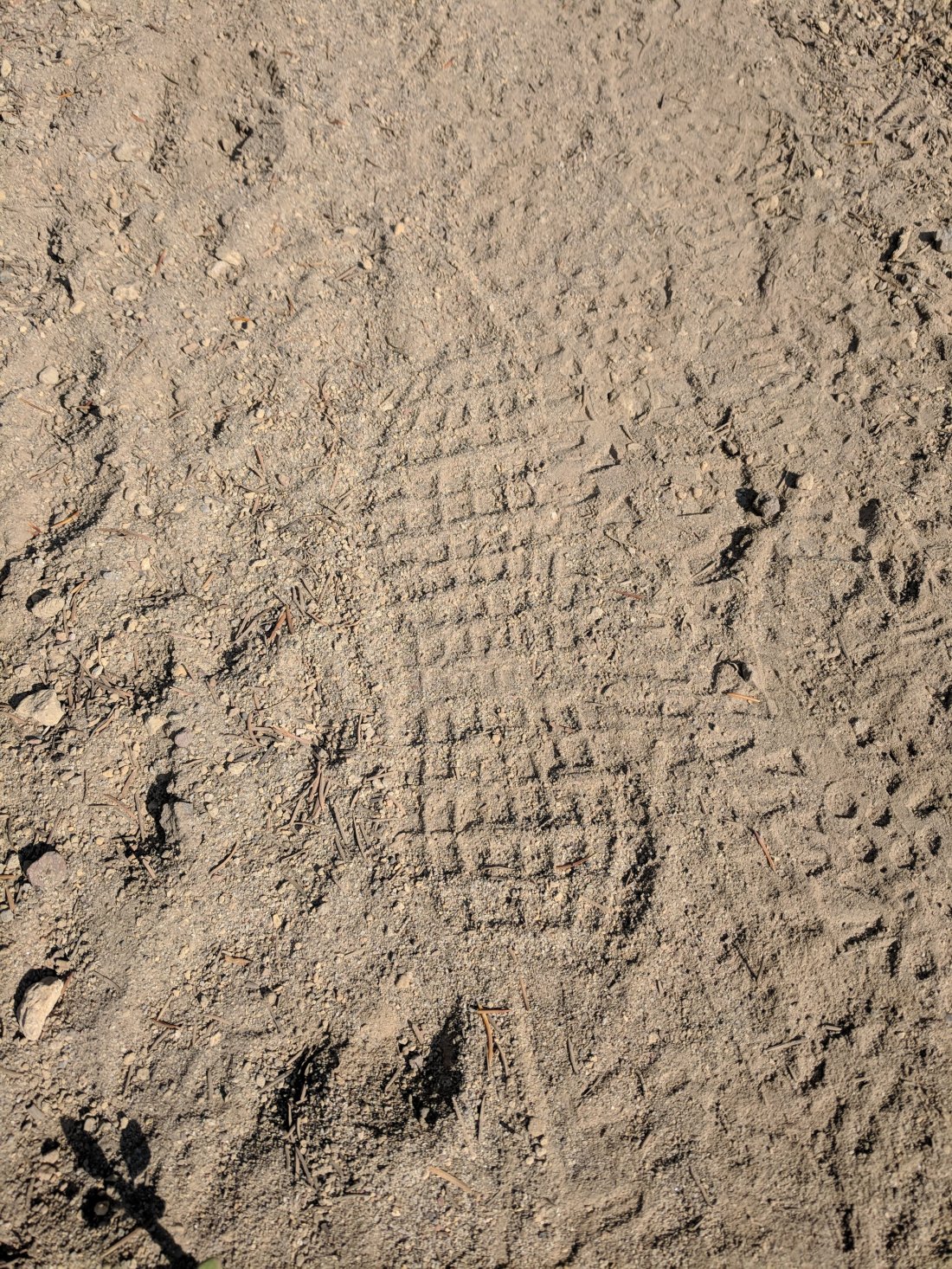Above. Ok so I’ve been following this footprint for about 2 weeks. I know I’ve been close to catching up with whomever owns this print. It’s driving me crazy lol. They are literally a step ahead of me πŸ˜‚. I’ve decided it looks like the Planters Peanut guy. Like in the movie Castaway with Tom Hanks where he befriends a volleyball and names it Wilson. This footprint is my Wilson I guess.