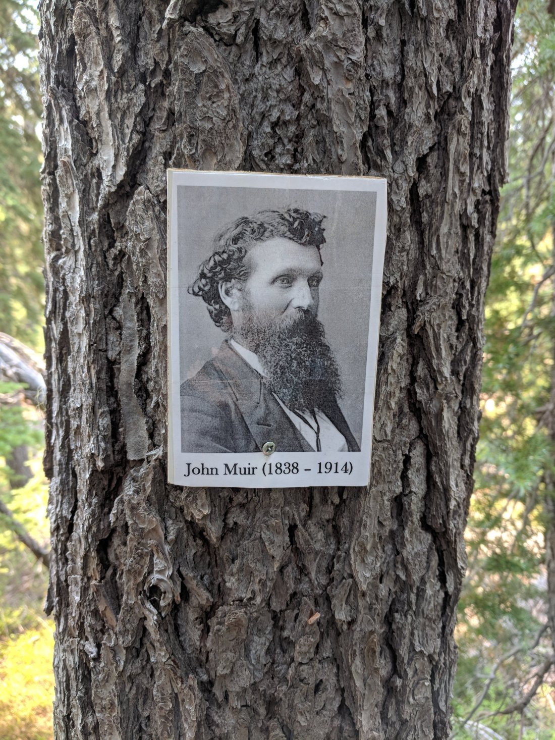 Here is a picture of John Muir on a random tree.