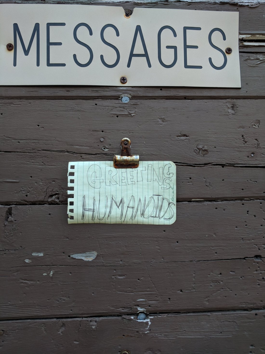 Important messages hikers leave, “Greetings Humanoids”