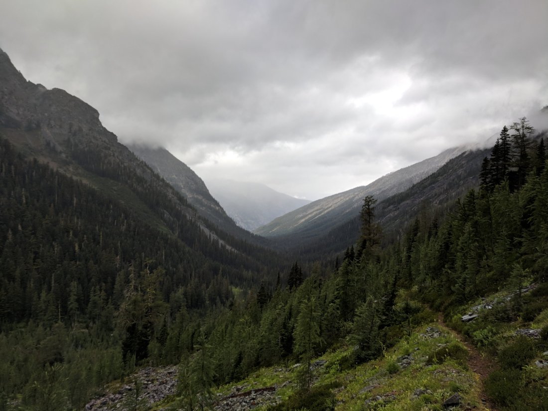 We arrived at the Cloudy Pass junction at 4pm and made it about 6 miles more into the detour to the lake in the distance below.
